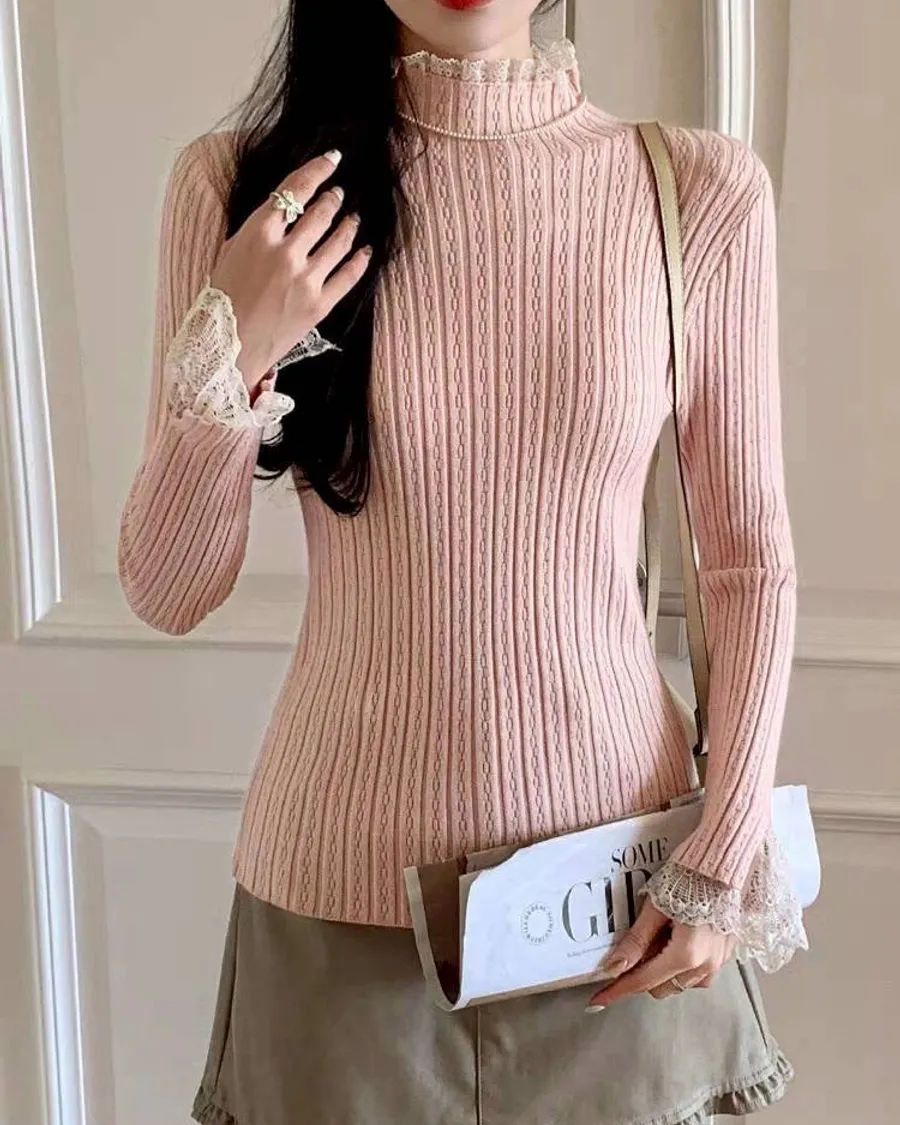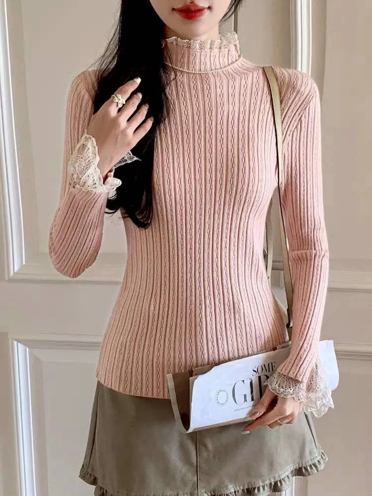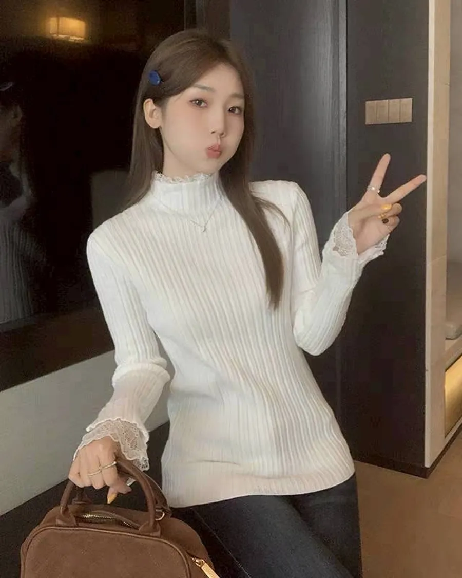 立領蕾絲花邊內搭上衣