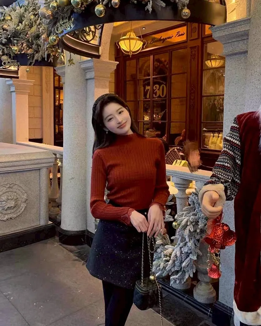 立領修飾脖線,螺紋顯瘦不貼身,