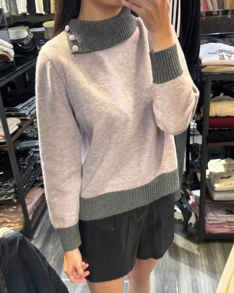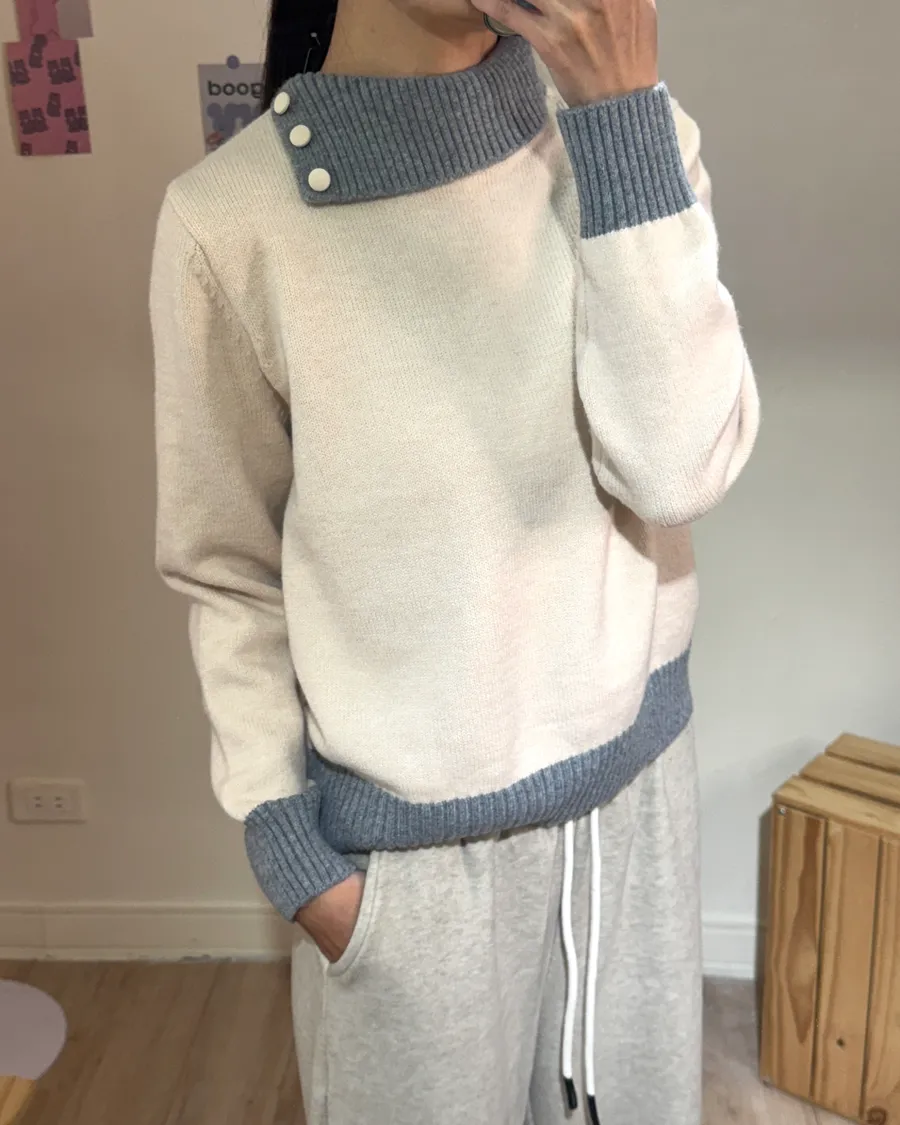 斜領撞色浣熊T