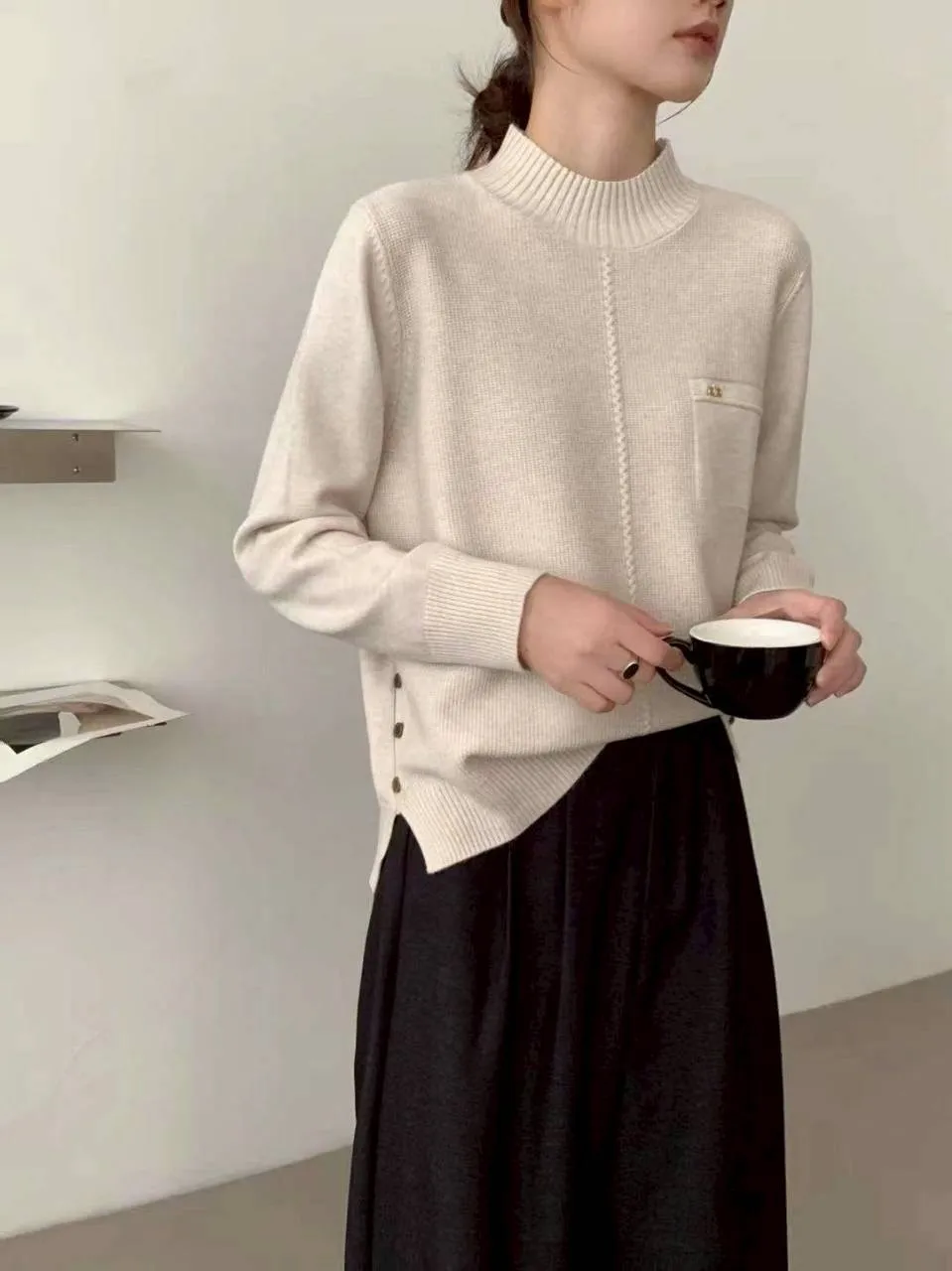 提醒您💌下單前請詳細閱讀 「購物須知 」&「付款與運送」-訂單成立後表示100%同意本賣場的購物交易條款立領剪裁,修飾臉型與脖線 假袋排扣設計,增加層次感 安迪絨材質,柔軟親膚 不貼身版型,上班、日常都合適